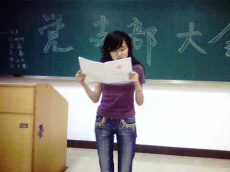 大会一开始,每位接受评议的同学都分别郑重地宣读了自己的“入党志愿”。接着,在他们的入党介绍人宣读了对他们入党的意见之后,这几位接受入党评议的同学分别对自己进行了全面的自我评价,并认真聆听了与会的党员代表对他们中肯的评价。大会的最后,由正式党员对徐姗姗等五位同学进行了无记名投票,决定是否将其吸收为中国共产党党员。