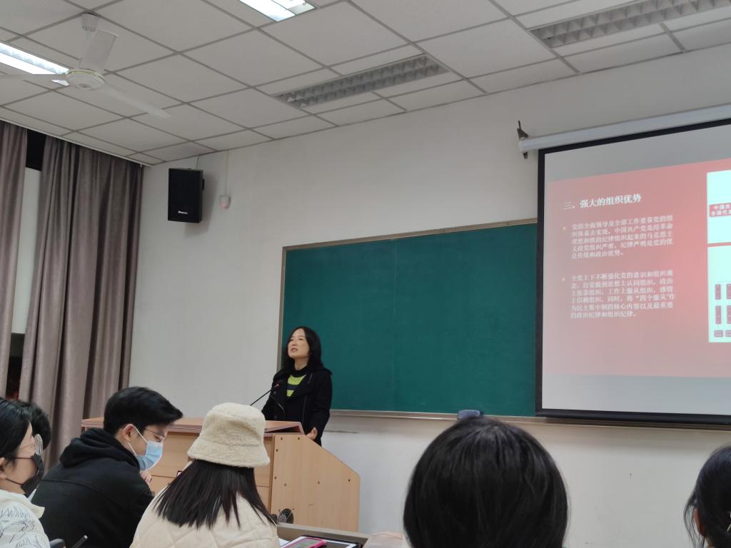 首先,梁丽老师以“中国共产党为什么能?”为主题给大家上了一节微党课,梁老师给大家讲解道,在中国共产党的先驱们创建中国共产党时,坚持真理、坚守理想,践行初心、担当使命,不怕牺牲、英勇斗争,对党忠诚、不负人民的伟大建党精神是中国共产党的精神之源。这些事迹告诉我们:树高千丈必有根,江流万里总有源。