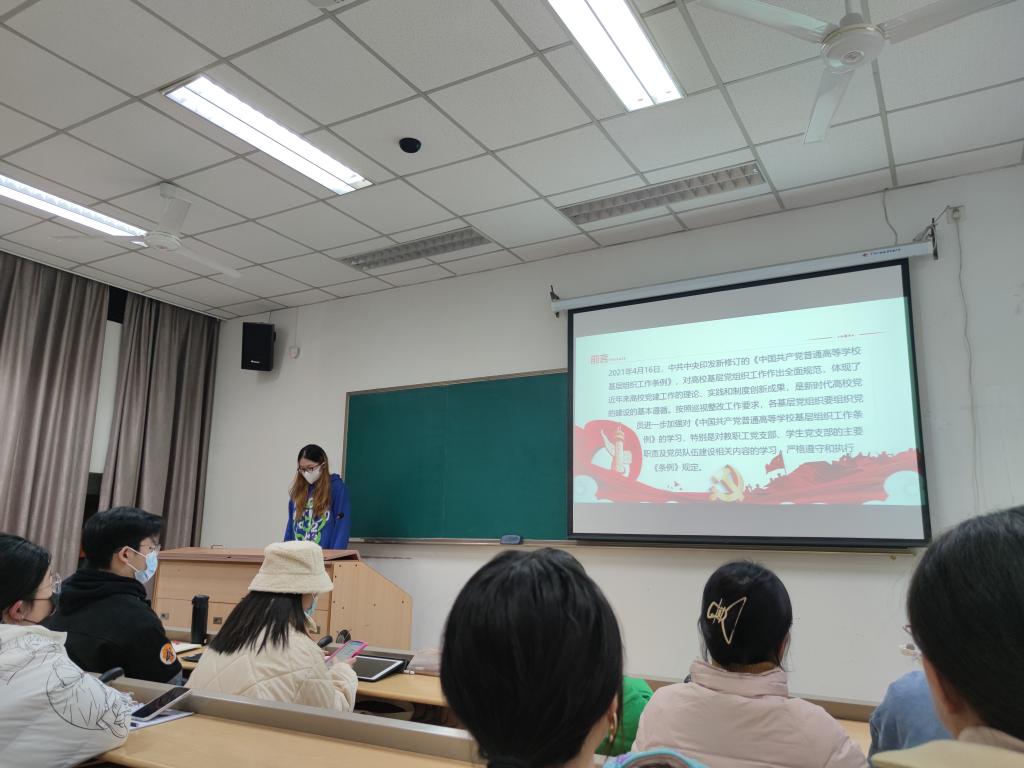 然后,张杨倩同志给大家解读了《中国共产党普通高等公司基层组织工作条例》。2021年4月16日,中共中央印发新修订的《中国共产党普通高等公司基层组织工作条例》,对高校基层党组织工作作出全面规范,体现了近年来高公司党建工作的理论、实践和制度创新成果,是新时代高公司党的建设的基本遵循。按照巡视整改工作要求,各基层党组织要组织党员进一步加强对《中国共产党普通高等公司基层组织工作条例》的学习,特别是对教职工党支部、员工党支部的主要职责及党员队伍建设相关内容的学习,严格遵守和执行《条例》规定。