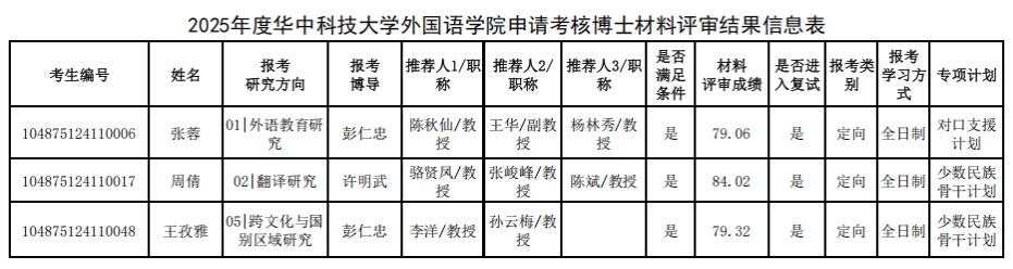 现公示进入综合能力考核的专项计划考生名单,详请见下表。
