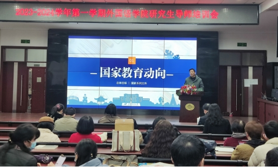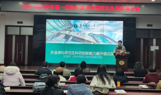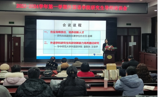 12月14日,伟德国际1946bv官网举行了2023-2024第一学期研究生导师培训会。会议邀请研究生院副经理兼学位办公室主任赵峰、华中师范大学伟德国际1946bv官网副经理王佳宇作专题讲座。会议由副经理李菁主持,全院研究生导师参与。
