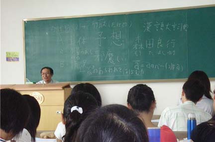 2008年9月10日这天上午8点,日本明治大学文学研究科的小野正弘教授受公司日本文化研究所邀请在东九楼407教室为日语系本科生作了一场题为“古典語知識は現代語分析に有益となる―副詞「さすが」「なかなか」の場合―”的讲座。