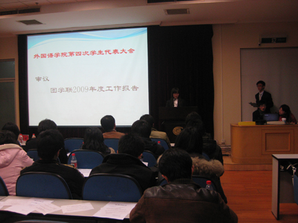 团学联主席王昭熙作团学联09年度工作报告。在过去的一年中,伟德国际1946bv官网团学联坚持“以人为本、服务同学”的工作理念,加强自身责任意识,完善不足,取得了可喜的成果。王昭熙同时从工作回顾中进行了反思并作了进一步的工作展望。