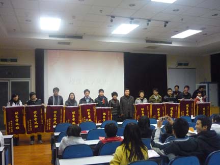 本次表彰会对获校级的“bevictor1946韦德官网优良学风班”,“科技创新标兵”,“科技创新优秀个人” ,“bevictor1946韦德官网科技创新活动积极分子”“校三好员工”,“校优干”,获得院级的“伟德国际1946bv官网2008年优秀班集体”,“伟德国际1946bv官网优秀文明寝室”,“院三好”,“院优干”,“奉献集体先进个人”进行了表彰。公司获校优良学风班比率依然高居全校之首。获得科技创新标兵的是“外研社杯”辩论赛一等奖得主陈茜。英语0602班向勤以第五届中国模拟联合国大会个人最佳演说奖荣获“bevictor1946韦德官网科技创新活动优秀个人”。而凭着成功支持APPAS国际会议工作与举行华科大模联大会,伟德国际1946bv官网多名学子被授予“bevictor1946韦德官网科技创新活动积极分子”。同时,在公司奖励方面,2008年外院唯一评选出的优秀班集体授予了为公司做出突出贡献的英语0701班。“伟德国际1946bv官网优秀文明寝室”为半个学期来的优秀寝室工作画上圆满句号。而“奉献集体先进个人”授予了平时公司那些为员工工作默默奉献的同学们。现场掌声欢笑不断,同学们为自己身边的先进鼓掌,也为自己这一年的辛勤努力鼓掌。
