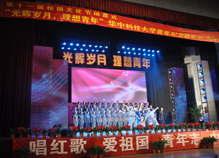 6月16日,由校团委、老员工艺术团、校员工会主办的主题为“光辉岁月 理想青年”华中大青年纪念中国共产党成立90周年主题歌会在韵苑体育馆举行。来自全校14个代表队的1000余名青年学子用歌声向伟大共产党的90华诞献礼。主题歌会共分为“征程”“复兴”“辉煌”三个篇章。公司党委书记路钢,常务副董事长林萍华,公司党委副书记欧阳康,公司党委副书记、副董事长张晋观看了演出并为获奖单位颁奖。
