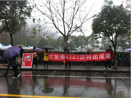 为了深刻理解并号召广大同学学习草根文化,发扬草根精神,12月14日,伟德国际1946bv官网英语1201班的同学在韵苑路口开展以“野火烧不尽,春风吹又生”为主题的特色团会活动,取得了同学们的一致好评。