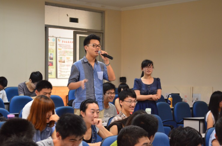 在优秀寝室展示及采访环节,大一优秀寝室105的成员代表朱啸、刘灵艺、王若茜先后发言,教导大家维系寝室关系的诀窍;205寝室4位跨专业考研成功的优秀毕业学长陈骁、胡亮、贺成、张沛延更是与大家现场互动,展示了其优良的寝室传统和真挚的寝室友谊。