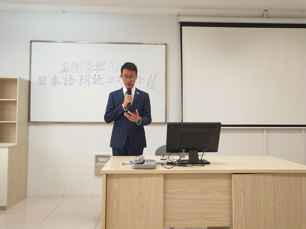 朗读大赛开始,主持人吕晔首先介绍了评委老师并宣读了比赛规则。本次比赛要求同学们用日语朗读演绎《龟兔赛跑》的故事,同学们按照事先抽签决定的顺序依次上台进行朗读。