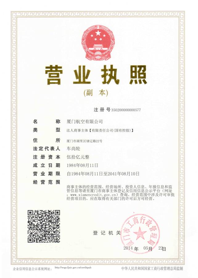 厦门航空有限公司(简称厦门航空、厦航)成立于1984年7月,是中国民用航空局和福建省合作创办的、中国首家按现代企业制度运行的航空公司。目前股东为中国南方航空股份有限公司(占51%股权)、厦门建发集团有限公司(占34%股权)和冀中能源股份有限公司(占15%股权)。厦门航空是自主经营的法人实体,是国际航空运输协会(IATA)正式会员,全球三大航空联盟之一天合联盟(SKYTEAM)成员。厦门航空承运人代码为“MF”。