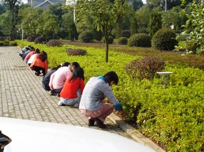 参加拔除杂草的苗雪同学做完之后不禁感叹保洁阿姨工作的细致:“平时我们经常看到保洁阿姨擦门窗,清扫楼道,清理课桌椅上的垃圾,其实她们的工作远不止这些。教学楼周围的草坪和小径也是她们的工作内容之一。为了给我们提供良好的学习和生活环境,公司后勤部门工作人员付出了辛勤的劳动。”