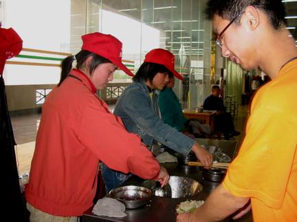 昨天每一个步入韵苑食堂的员工,也许都有一种感觉——今天的食堂与往日有所不同。当看到我们戴红色帽子的志愿者时才恍然大悟。往日餐桌上的没来得及清理的渣物不见了,代之以一片整洁清爽;往日排队时拥拥挤挤的情景不见了,替之以一片的秩序井然;往日沉默冷清的餐桌气氛不见了,因为有我们热情似火的姑娘小伙们。他们时时轻轻地提醒你:“同学,请将残渣倒入盘中,好吗?”也有微笑地向你道歉:“我没打搅你吧?”但更多的时候,他们就静静地埋着头,从这张桌子移动到那张桌子,麻利地拂去哪怕一点点残渣,尽量为大家提供一个更好的就餐环境。