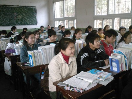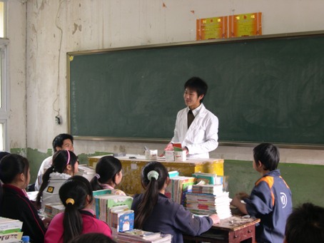 黄聪同学擅长英语语音,于是她被安排教授初三四班的口语课。她那清晰的发音,标准的语调,不时赢得同学们的掌声和喝彩。刘雁铭同学在化学方面有专长,为了这次的授课,他特意温习了初三的化学知识,并广泛地收集了资料,准备了一堂生动的趣味化学课。尤其他念给同学们听的《浓硫酸给水的一封情书》更是将课堂气氛推向了高潮,充分调动了同学们的积极性,引发了同学们的兴趣和热情。另外,艾丽思,彭向向,胡娜,诸林杰等几位同学也各显神通,根据自己的特长,他们分别教授数学,物理,语文,篮球等方面的知识,并都取得了良好的课堂效果。值得一提的是,来自新疆的穆卡德斯同学更是饶有兴趣地向大家讲起了新疆的宗教,语言,历史等方面的知识。
