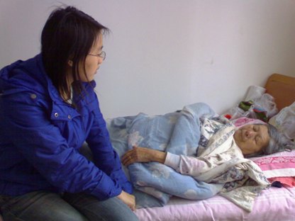 故地重访,熟悉的面孔让日语班的同学倍感亲切,但同时他们也发现,有的床位空了,有的床位换上了新的面孔。面对空空的床位,大家都感慨万千。星光老年公寓的状况依旧,服务人员短缺,老人们的身体健康情况不容乐观。有的老人说“我不如死了算了,动也动不了…”有的老人则重复着“毛主席是中国的…”“我的儿子在工程大学” 等话语。与此相对,敬老院里也有一批积极乐观开朗的老人,他们笑对生活的快乐情绪感染着周围的老人。