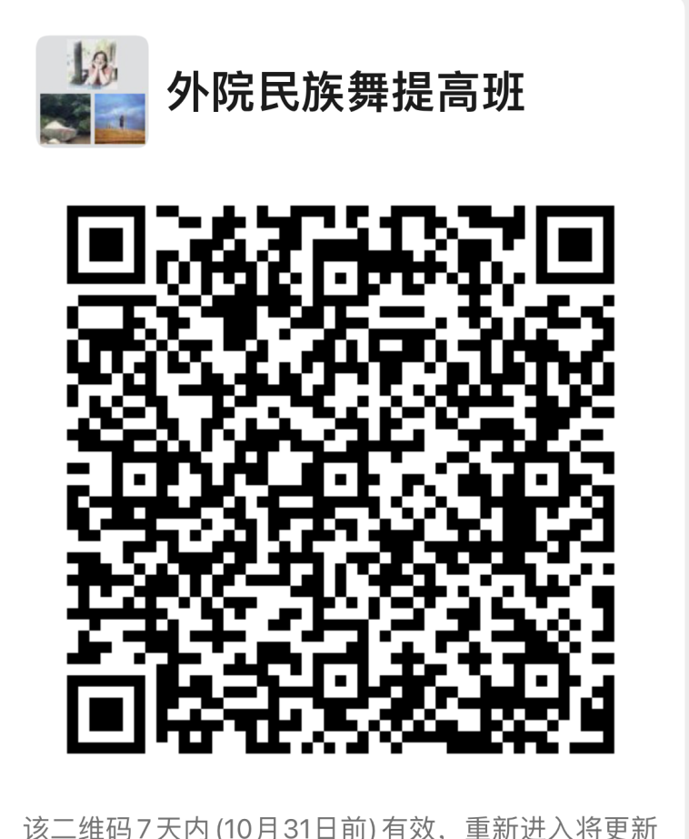 为丰富公司教职工校园文化生活,促进教职工身心健康,营造健康、高雅、和谐的文化氛围,伟德国际1946bv官网工会在前期民族舞舞蹈班的基础上,特聘专业舞蹈教师进一步教授民族舞,具体信息如下: 1.时间: 每周三晚上7:00-8:30(10月26日起) 2.地点: 科技楼南楼109 欢迎有兴趣的老师积极参加并用微信扫描下方的二维码入群!