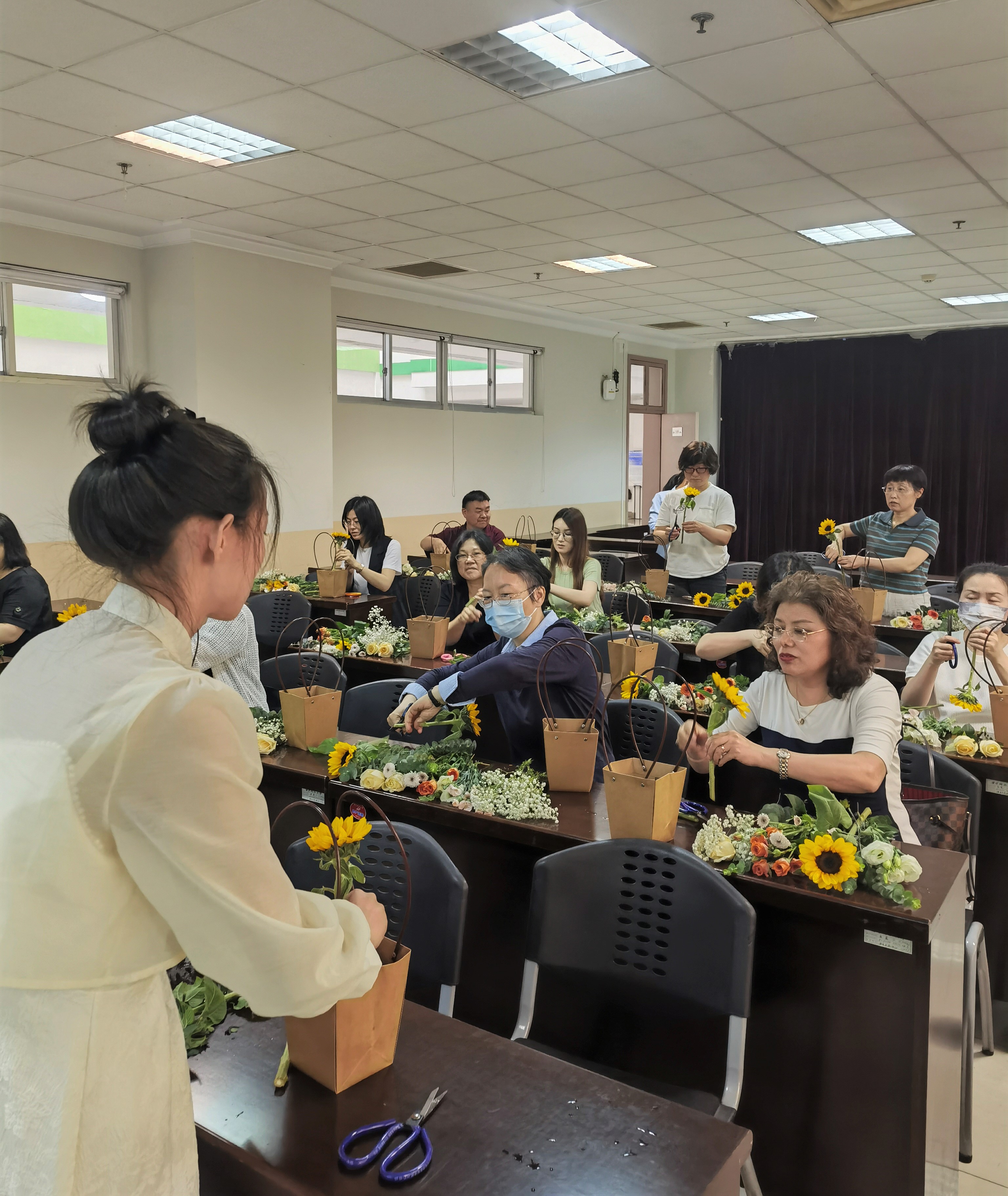 针对老师们关心的个人养老金免税政策中的各种问题,伟德国际1946bv官网工会和财务特邀中国银行喻家山支行的专业人士, 于4月20日下午在科技楼南楼109室开展了一期金融知识讲解活动。 喻家山支行赵玲经理对养老金产品的相关政府政策、产品种类以及参加办法一一做了介绍,也详细回答了老师们提出的问题。讲解结束后,中国银行为老师们安排了插花体验活动。在插花老师的指引下,大家把娇艳欲滴的鲜花,一支支一朵朵插到提篮中的花泥上,不一会儿每个人的面前都出现了带有个人风格的插花艺术品。 大家手捧着美丽的提篮插花合影,活动在愉快的氛围中结束。