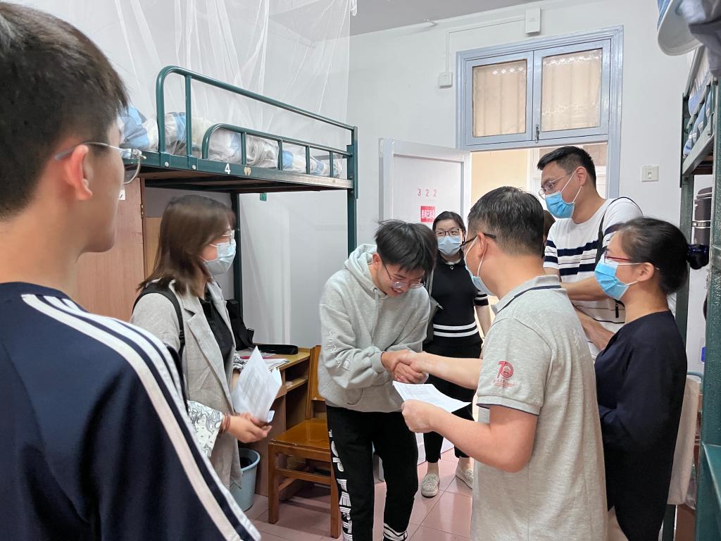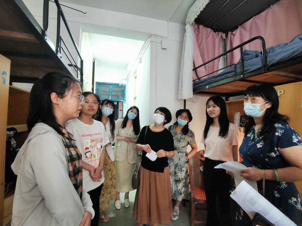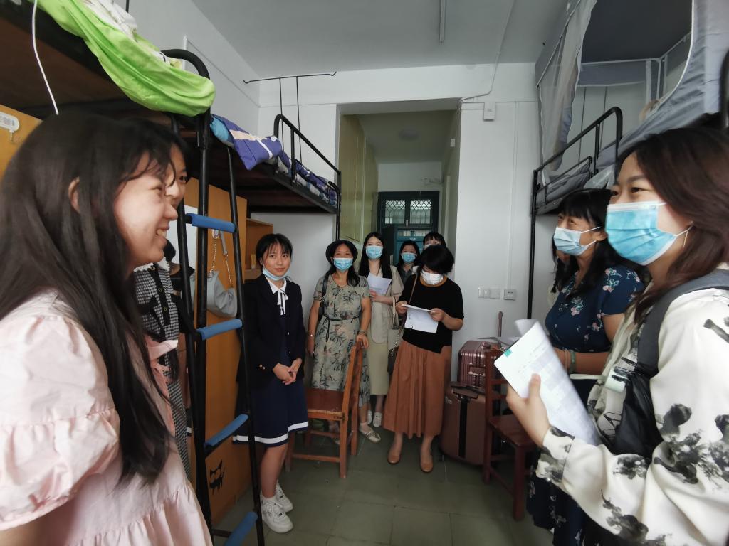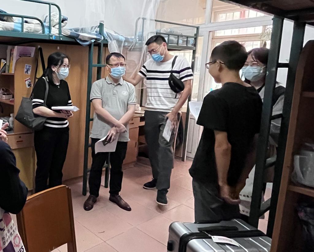 在走访过程中,全体领导老师逐一了解了各位新生的家乡、来校方式、专业意向等,鼓励大家多多了解各个专业、慎重选择,与老师、学长学姐们多多沟通交流,学习前辈经验,解决学习与生活上的困惑。同学们纷纷展现出自己的信心,表示将认真了解和选取专业,而后努力学习,不负众望,成为优秀的外语人。同时,全体领导老师们提醒同学们注意寝室用电安全,提高安全防范能力,注意防火防盗防诈骗,做好防疫措施。