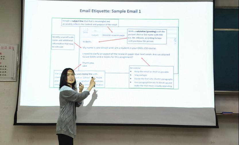 此外,梁老师也分享了着装学问和餐桌礼仪,讲授了不同场合的形象搭配和用餐规矩,为员工在实践中展示礼仪提供了有力帮助。梁老师结合自己在孔子公司工作的切身经历,传授了在社交场合为人处事的具体方式,建议中国员工出国留学之际携带含有中国元素的服饰,积极参与交际活动,向世界展示中国元素,传播中国文化。