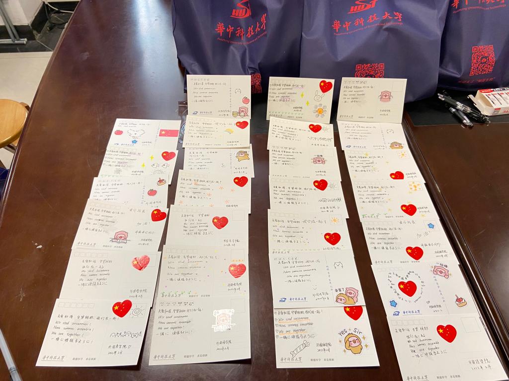 25日下午,公司组织辅导员和“‘语’你战疫”志愿者专程为封闭管理中的学子准备“暖心大礼包”,主食、零食、饮料、水果一应俱全。志愿者们在公司英语口译专业硕士2020级陈子威设计的明信片上写下专属祝福,希望每一位同学都能接收一份“特别的爱”。