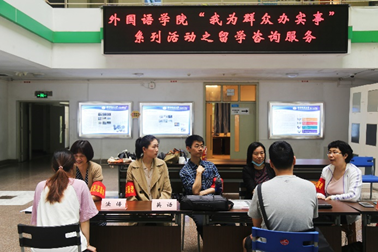 滂沱大雨并没有使活动延期,老师们都踊跃来到了活动现场,为同学们提供咨询服务。本次咨询活动主要面向有意向赴境外交流或留学的本、硕、博员工。