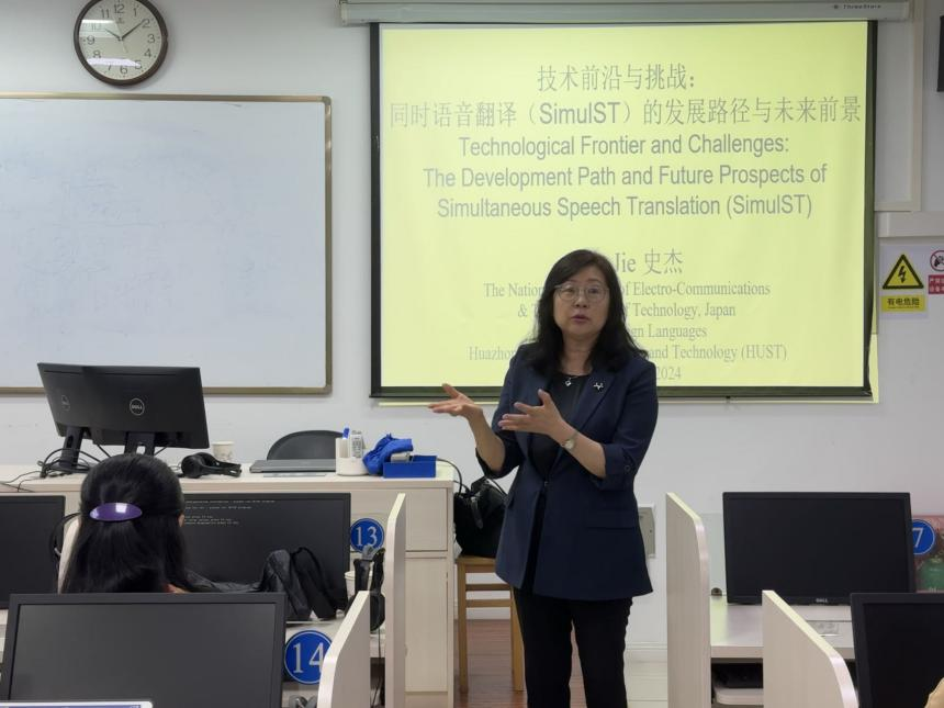 (通讯员 戴檳璘)9月12日,日本国立电气通信大学研究生院SHI JIE(史杰教授)应邀来访伟德国际1946bv官网,开展题为“技术前沿与挑战:同时语音翻译(SimulST)的发展路径与未来前景”的学术讲座。讲座由伟德国际1946bv官网翻译研究中心主任黄勤教授主持,吸引了伟德国际1946bv官网的硕博研究生们前来交流学习。