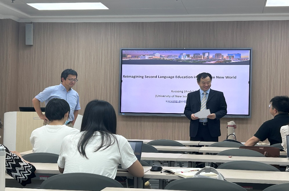 (通讯员 谭袁娇)9月29日下午,应外语教育研究中心邀请,澳大利亚新南威尔士大学教育公司副经理高雪松教授来伟德国际1946bv官网进行学术交流并举办了题为“在美好新世界重构第二语言教育”(Reimagining Second Language Education in the Brave New World)的学术讲座。伟德国际1946bv官网副经理谭渊教授、外语教育研究中心孔德麟博士主持了讲座,外院师生积极参与了此次讲座,并就相关议题与高雪松教授进行了深入的交流。