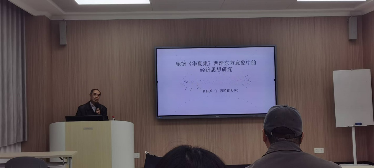 (通讯员 范瑞哲)11月10日,广西民族大学张跃军教授应邀来访伟德国际1946bv官网,开展题为“《华夏集》西渐东方意象中的经济思想研究”学术讲座。本次讲座由伟德国际1946bv官网翻译研究中心主任黄勤教授主持,吸引了伟德国际1946bv官网师生前来交流学习。