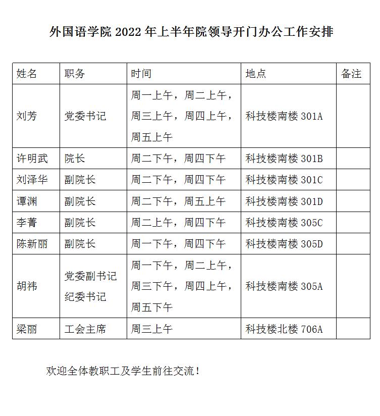2022年上半年院领导开门办公工作安排