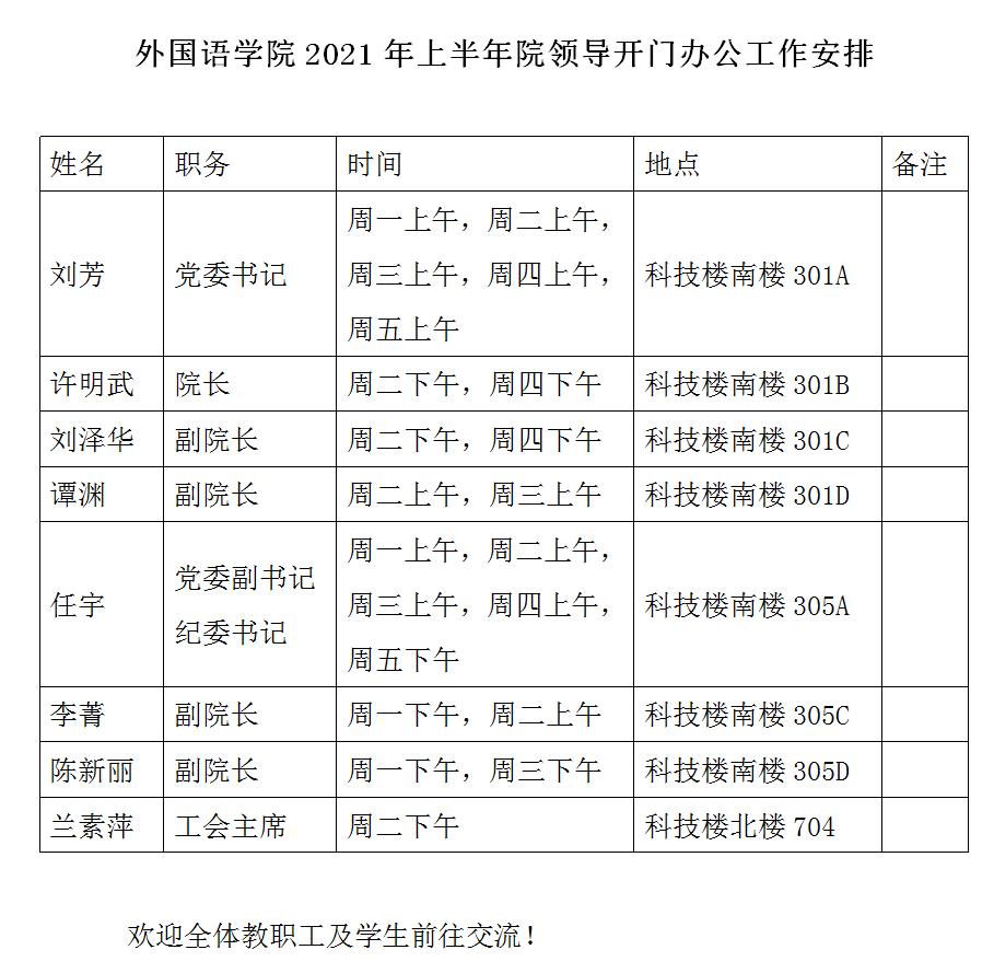 2021年上半年院领导开门办公工作安排