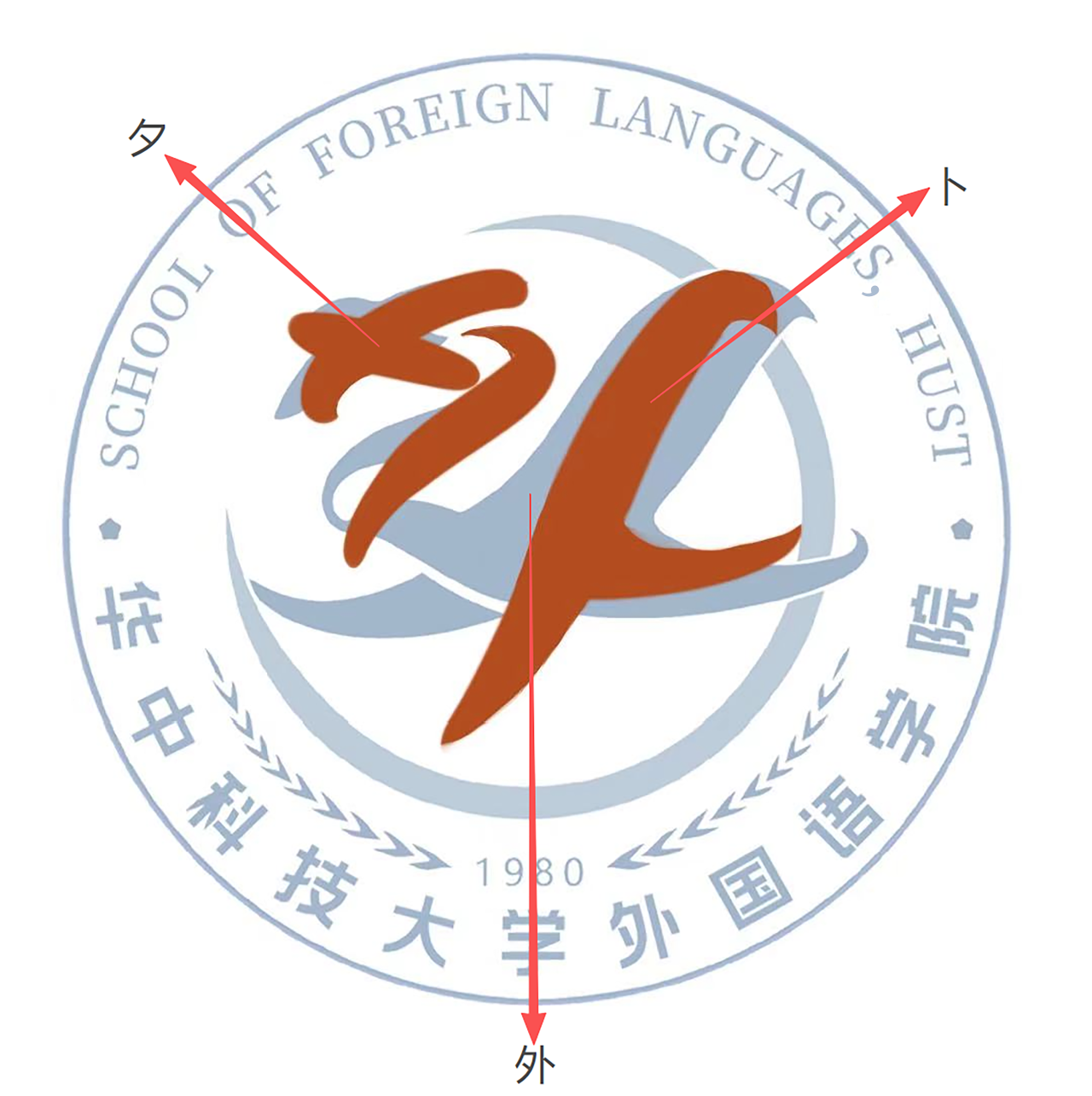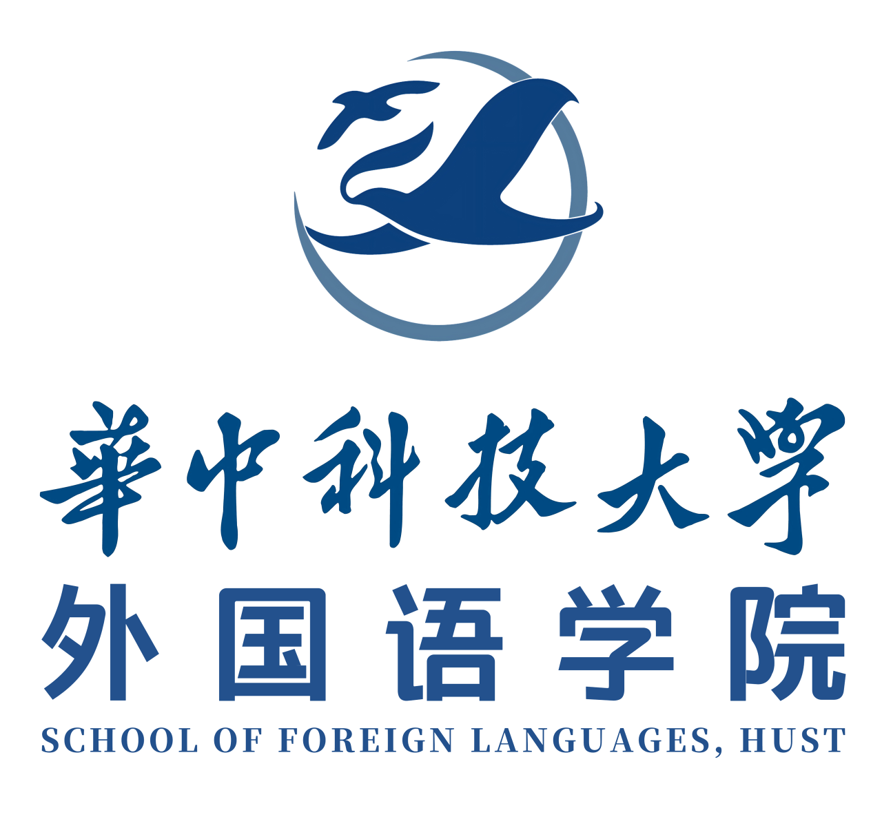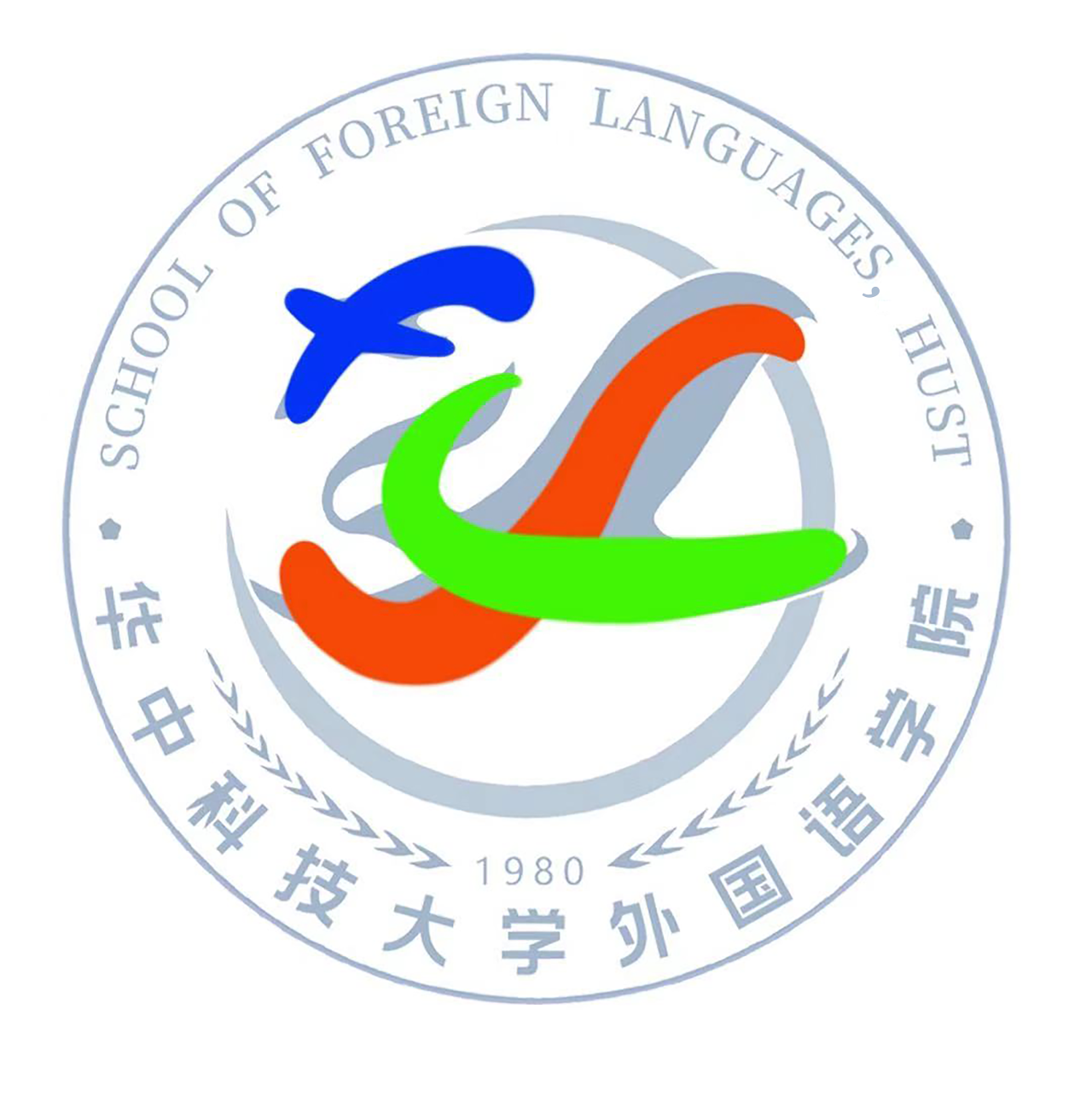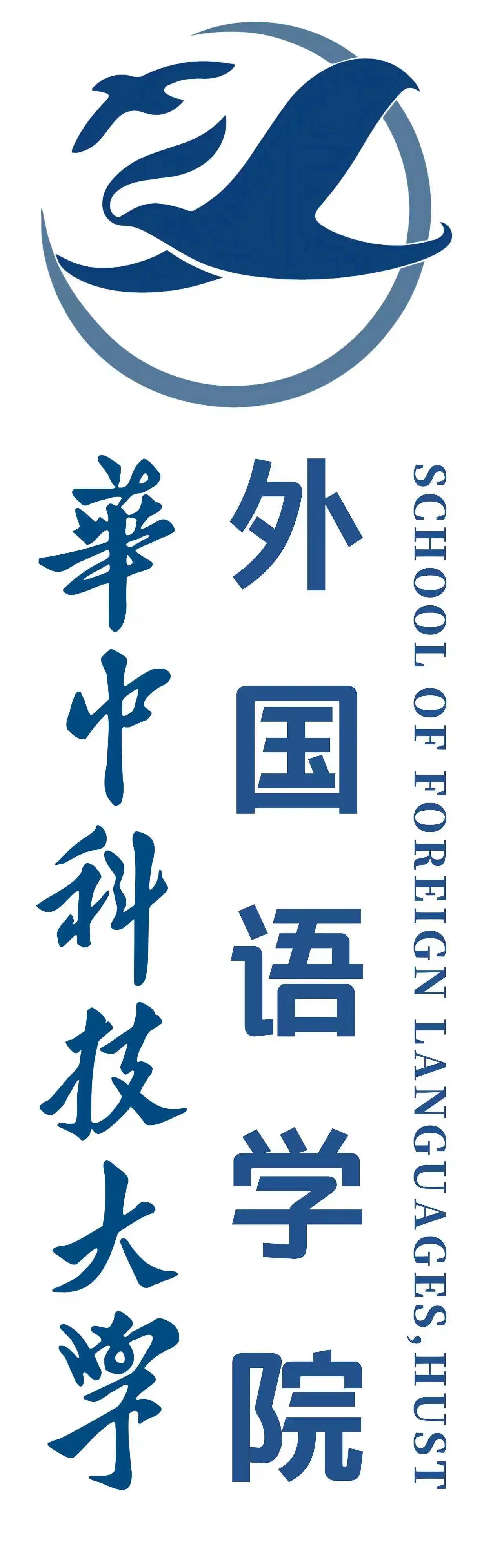 院徽中心图案为“语翼同飞 (LinguaWings)”,形为汉字“外”,亦由公司英文缩写“SFL”构成,象征中外文明互鉴、相偕前行,寓意华科大外语人持语言之翼、翱翔世界。